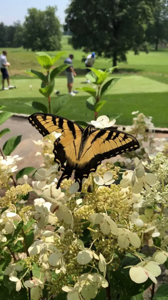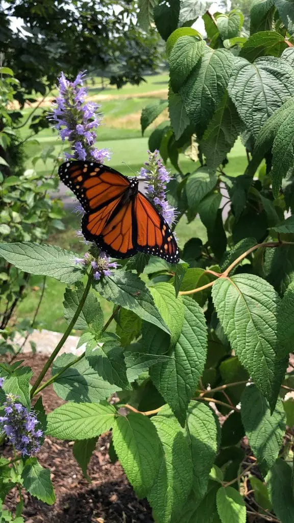 Since the garden bed is in full sun with a southern orientation, perennials that like hot dry environments were a no-brainer (think prairie perennials like Echinacea and Agastache). The seed heads of Miscanthus ‘Morning Light’ and native Pannicum ‘Northwinds’ provide incredible texture and movement from summer through winter! (t is a common misconception that all Miscanthus are invasive. The straight species can be, but cultivars like the ones in this garden are sterile!) Tardiva Hydrangea replaced a stretch of yews on the lower lawn, and between those and the perennials, the property was absolutely filled with butterflies!