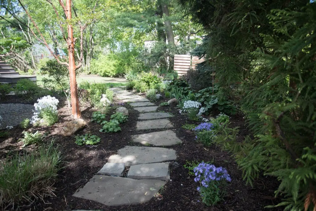 In this case, to enhance the beautiful new deck addition, we chose to create several theme gardens which are intertwined with each other, focused on health and healing through nature and serenity.