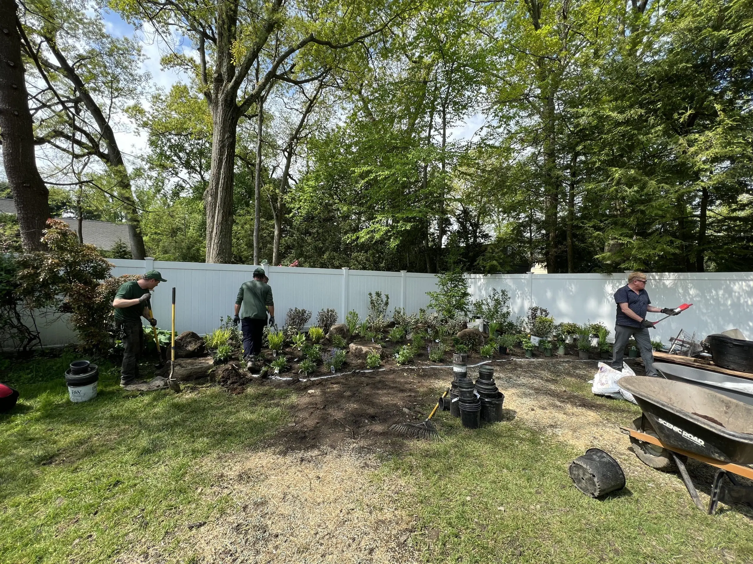 In this case, the existing soil was highly compact with a high proportion of clay. We core aerated, vertical slice seeded and applied numerous soil amendments to the lawn area, to help relieve compaction and improve drainage capacity.