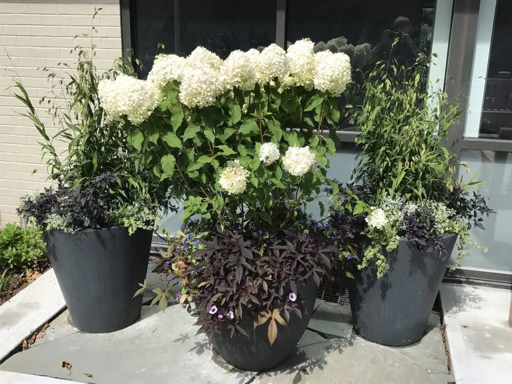 Seasonal color was supplied by placing containers above an exposed grate which was partially covered with removable flagging.