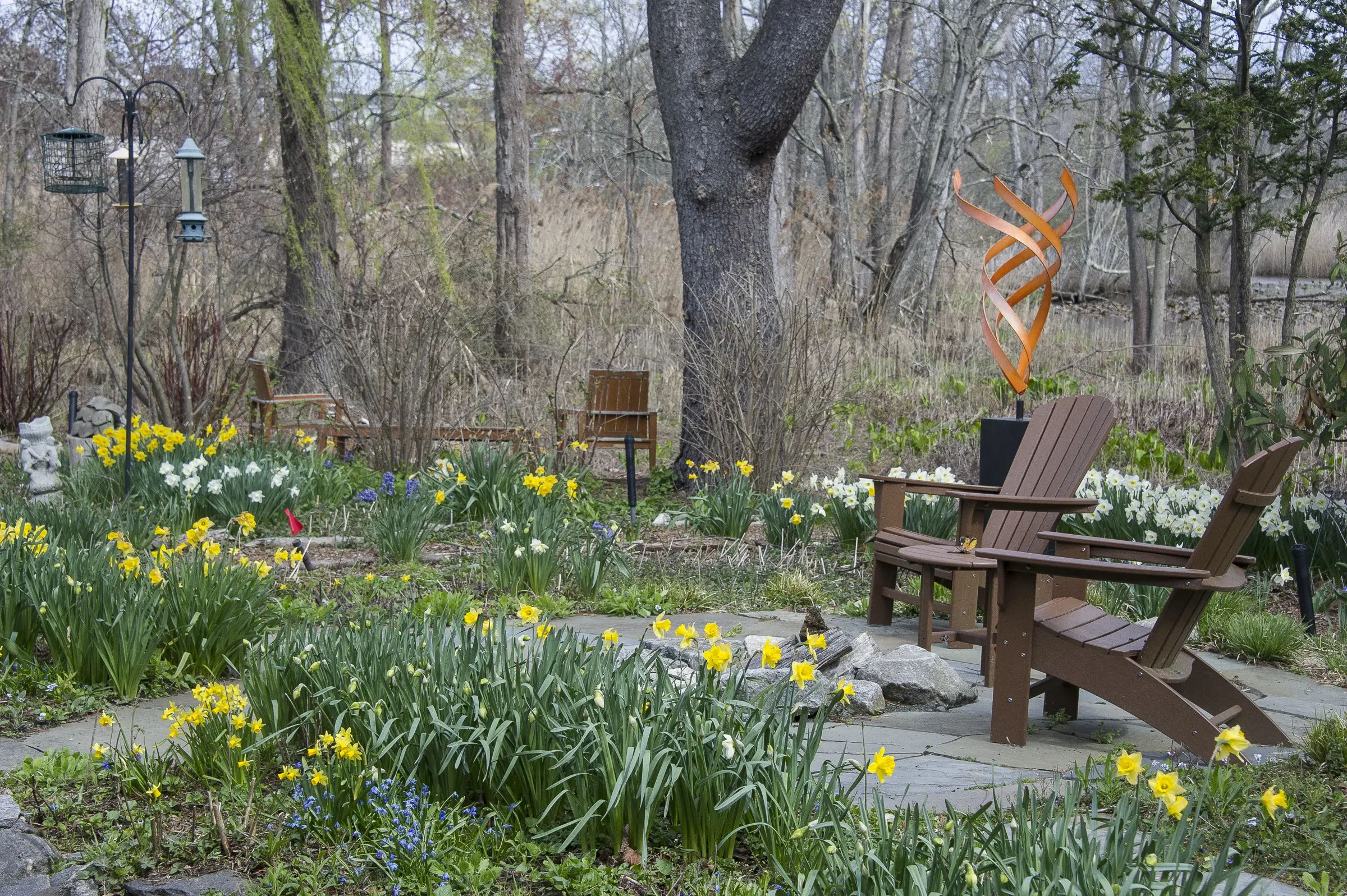 Use bulbs to frame seating areas and spaces that will be used in early spring.