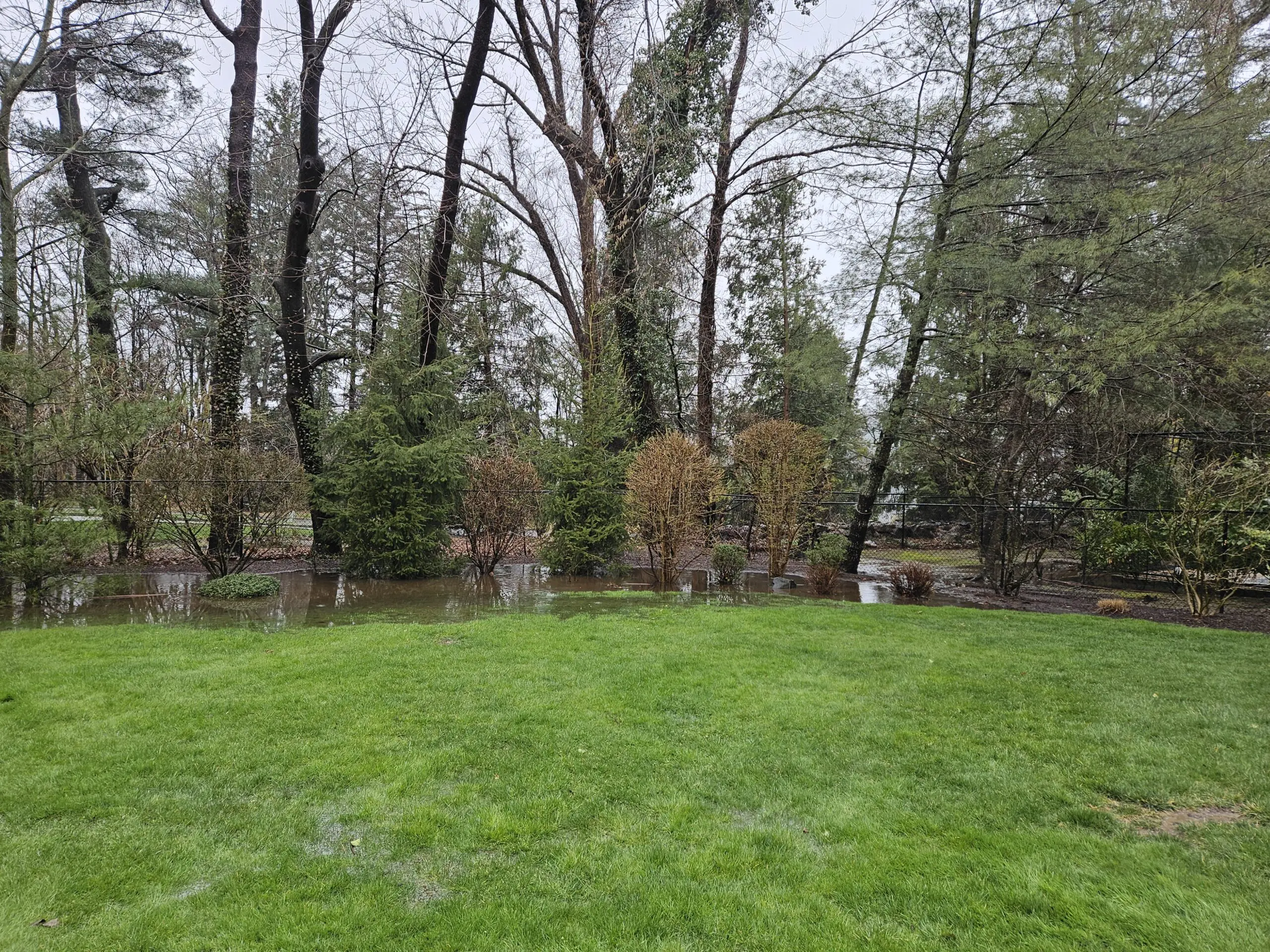 BEFORE: flooding from a storm event accumulates in the rear corner of the property.